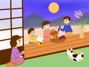 月見団子やススキをお供えし、家族や地域の人々とともに月を楽しむ習慣があります。